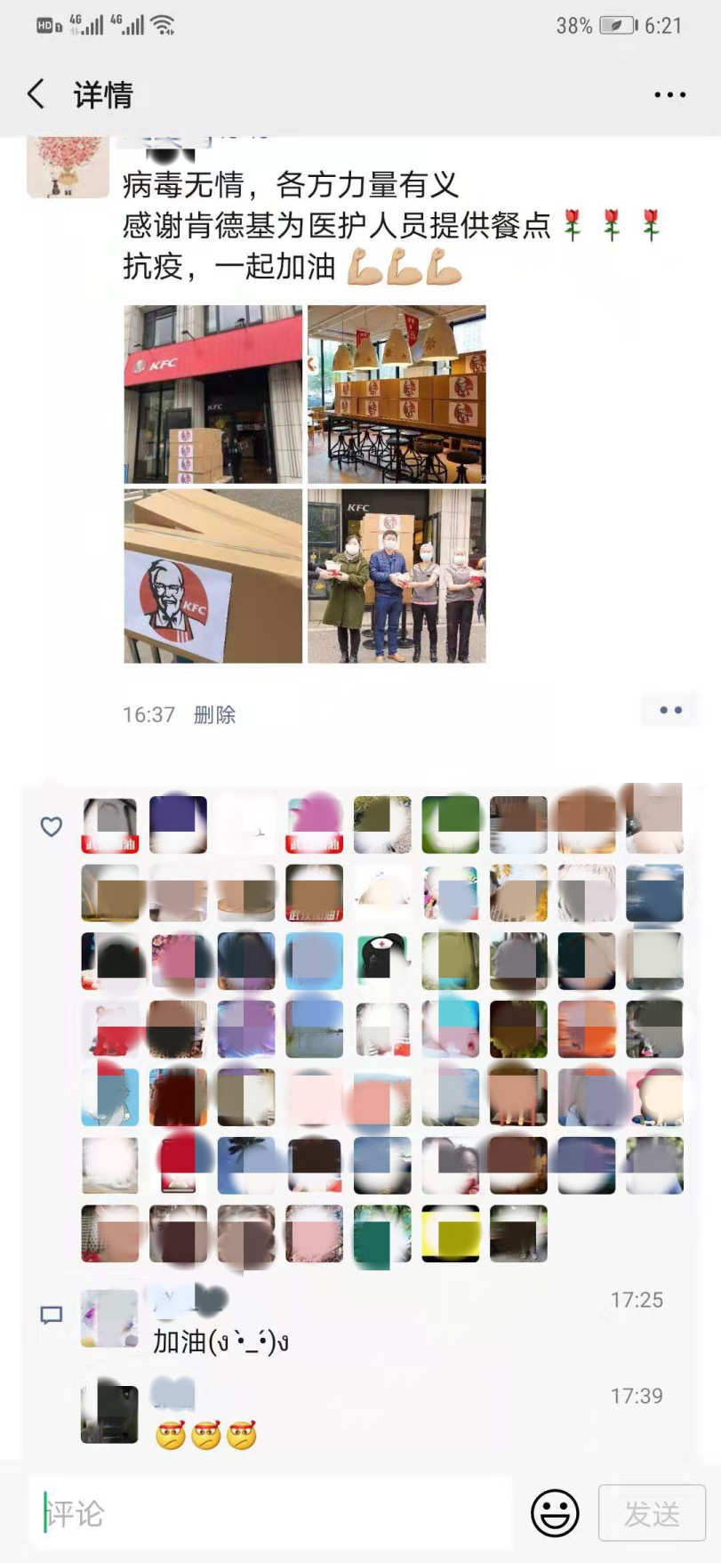 自新型冠狀病毒引發(fā)的肺炎疫情出現(xiàn)以來,肯德基中國(guó)的母公司百勝中國(guó)的員工一直惦記著奮戰(zhàn)在抗擊疫情第一線的醫(yī)療人員們,當(dāng)了解到醫(yī)護(hù)人員存在食品短缺問題,百勝中國(guó)立即在武漢啟動(dòng)內(nèi)部志愿者招募工作,招募微信在公司內(nèi)部一經(jīng)發(fā)出,響應(yīng)者非常踴躍。不到一天時(shí)間,就有近千名志愿者報(bào)名。疫情面前,人心凝聚,激昂之情,令人動(dòng)容。