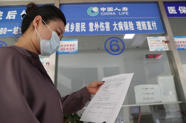 (中國人壽創(chuàng)新開展健康扶貧“一站式”結算服務,讓數(shù)據多跑路、人員少跑腿。圖為設在醫(yī)院結算窗口的中國人壽健康扶貧大病保險一站式結算理賠直付窗口。)