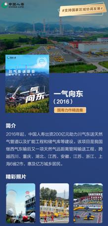 2016年起,公司出資200億元助力川氣東送天然氣管道以及擴(kuò)能工程和儲氣庫等建設(shè)。該工程跨越四川、重慶、湖北、江西、安徽、江蘇、浙江、上海6省2市,管道全長2229千米,設(shè)計(jì)年輸氣能力120億立方米,是連接長江經(jīng)濟(jì)帶沿線重要的天然氣長輸管線,惠及億萬城鄉(xiāng)居民。
