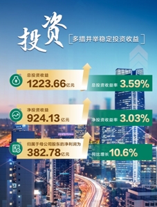 努力穩(wěn)定整體收益水平。該公司將資產(chǎn)負債管理理念貫穿經(jīng)營管理各環(huán)節(jié),積極兼顧長期價值和短期效益,持續(xù)加強成本管控和承保管理。2024年上半年,中國人壽實現(xiàn)凈投資收益924.13億元,較2023年同口徑同比增加18.28億元;凈投資收益率為3.03%。實現(xiàn)總投資收益1223.66億元,較2023年同口徑同比增加309.94億元;總投資收益率為3.59%,較2023年同口徑同比上升26個基點。實現(xiàn)歸屬于母公司股東的凈利潤為382.78億元,同比增長10.6%。