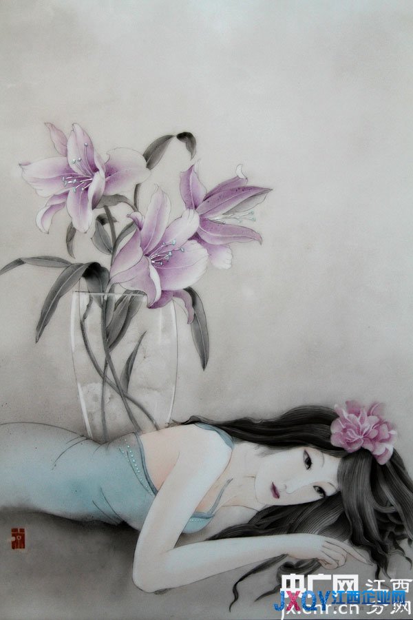 周涼涼2011年來到景德鎮(zhèn),她的工作室名為“瓷眸”,正是她的藝術(shù)風格的體現(xiàn)。慵懶的午后,安靜的女子,閑適淡雅,這些是她的畫中最常出現(xiàn)的意象。