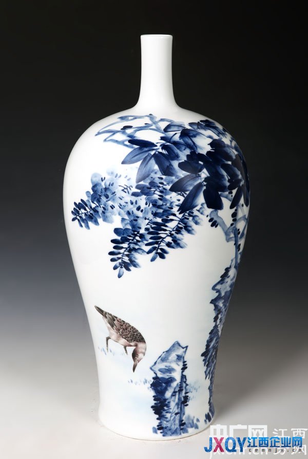 幾年前,他最有代表性的藝術創(chuàng)作還要屬寫意青花,洪南雨用自己獨特的陶瓷藝術語言,形象的表現(xiàn)自己的思想意識和審美感受。從2004年開始,他專攻寫意青花,他筆下的寫意青花花鳥不只是簡單的形式摹寫,而是涵映世界廣大精微于胸的精神抒發(fā)。沒有浮躁,沒有刻意,他憑借寧靜的心襟,去發(fā)現(xiàn)天地間深沉的意境。