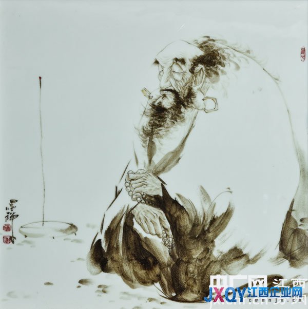 后來一次偶然機(jī)會(huì),他潸然醒悟,陶瓷作為特殊的載體,有別于國畫宣紙、油畫布,有它自己的特性,他找到了自己所缺失的東西,從此潛下心來鉆研創(chuàng)作。