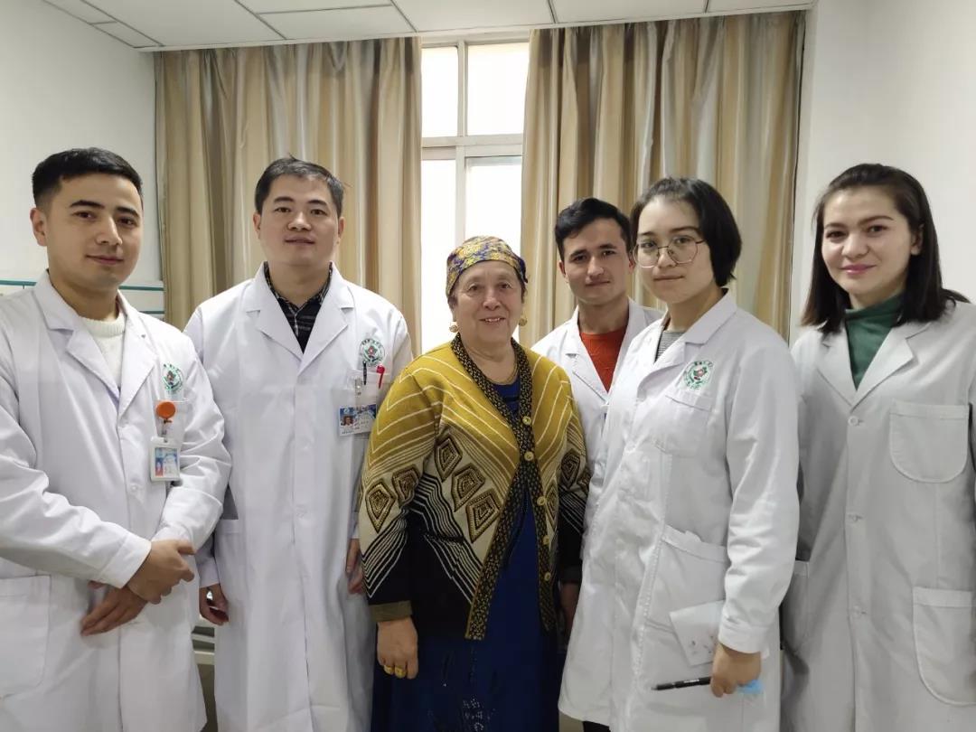 歐肉孜古麗(左三)感謝吳庭勝醫(yī)生(左二)治好了她的肩痛