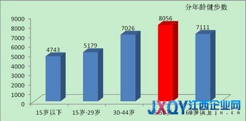 而從年齡段來看,45至59歲的中年人平均每日走路的步數(shù)竟然秒殺一眾年輕人,以人均8056步占據(jù)榜首。