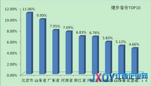 從健步走人群的地理分布來看,北京遙遙領先,不僅以11.06%的參與量獨占鰲頭,更是熱衷于分享鏈接,邀請親朋好友參加,“京圈”文化已然深入到日常生活中。