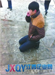 昨日下午1時許,鐵嶺某高校大門對過的人行道上,一個十八九歲的男孩跪在雪地上。男孩輪流撥打手中的兩部手機,不時和對方通話。