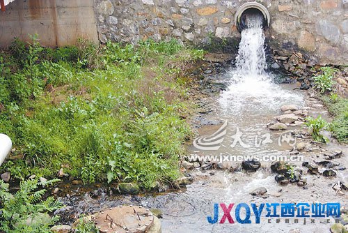 4月8日,記者趕赴九江市廬山區(qū),來到濂溪大道和前進(jìn)東路交匯處的濂溪河段,分別沿著濂溪大橋至長江化工有限公司(即5727廠)上游及該大橋至馮村下游河段,一路行走一路察看,發(fā)現(xiàn)上游的河水清澈見底,三三兩兩的居民在河中洗衣服,有幾個調(diào)皮的孩童赤著腳站在河邊潑水嬉戲。然而記者轉(zhuǎn)向濂溪橋至馮村下游段察看時,河水則變成了乳白色,看不到有人在河里洗滌。在大橋下石塊砌成的河岸坡邊,有一處直徑達(dá)五六十厘米的排污口,正嘩啦啦地流出淡淡的乳白色污水,直接流向河水中。在現(xiàn)場記者還注意到,離岸坡排污管口四五米處的河底,確實(shí)有一個蓋有鐵質(zhì)窨井蓋的排污口。