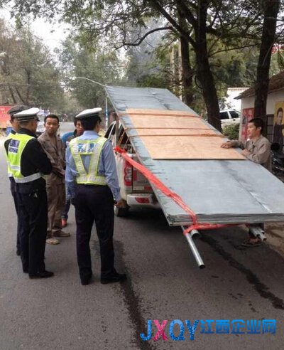10時(shí)許,民警在景瑤線設(shè)置臨時(shí)卡點(diǎn),對(duì)過(guò)往的各類(lèi)車(chē)輛進(jìn)行檢查,檢查中一輛由西向東駛來(lái)一輛小貨車(chē)引起了民警的注意,從遠(yuǎn)處看這輛貨車(chē)車(chē)頭就像架著一個(gè)大帳篷,明顯屬于違規(guī)裝載了,待車(chē)駛近,民警立即上前攔下了這輛車(chē)檢查,這是一輛外地牌照的小貨車(chē),貨車(chē)后面裝了幾塊超大的鐵皮,前后都超出車(chē)輛本身的3、4米長(zhǎng),鐵皮下方還綁著幾根鋼筋,鋼筋甚至比鐵皮還要長(zhǎng),幾乎是拖著地走的,整個(gè)貨物壓在車(chē)頭上不僅僅影響到后車(chē)鏡的視線,還影響到了車(chē)輛的正常駕駛,如此裝載貨物很容易造成車(chē)輛在行駛中與過(guò)往的車(chē)輛發(fā)生刮蹭,也容易碰到其它的行人而發(fā)生交通事故,存在極大的安全隱患,民警攔下后對(duì)該駕駛員這種毫無(wú)安全意識(shí)的行為進(jìn)行了深刻的批評(píng)教育,講解貨車(chē)超長(zhǎng)的危險(xiǎn)性,經(jīng)過(guò)民警的一番教育后,貨車(chē)司機(jī)承認(rèn)錯(cuò)誤,并表示今后不會(huì)再犯類(lèi)似的錯(cuò)誤,民警對(duì)駕駛員也作出了相應(yīng)的處罰。